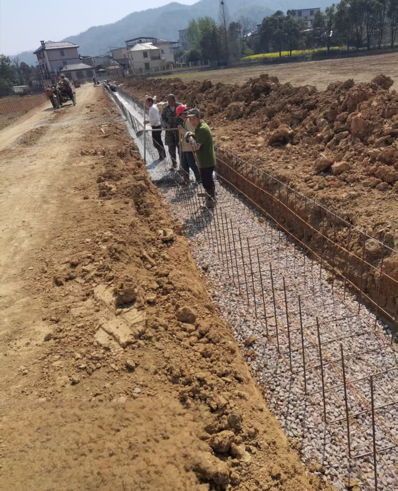 并且,為進(jìn)一步維護(hù)田間各設(shè)施運(yùn)轉(zhuǎn),新建及維修千米田間道路,便利農(nóng)機(jī)通行。通過(guò)修建防護(hù)擋土墻并栽種紅葉石楠維護(hù)農(nóng)田生態(tài);架設(shè)百米輸電線路,保障田間電力供應(yīng)。