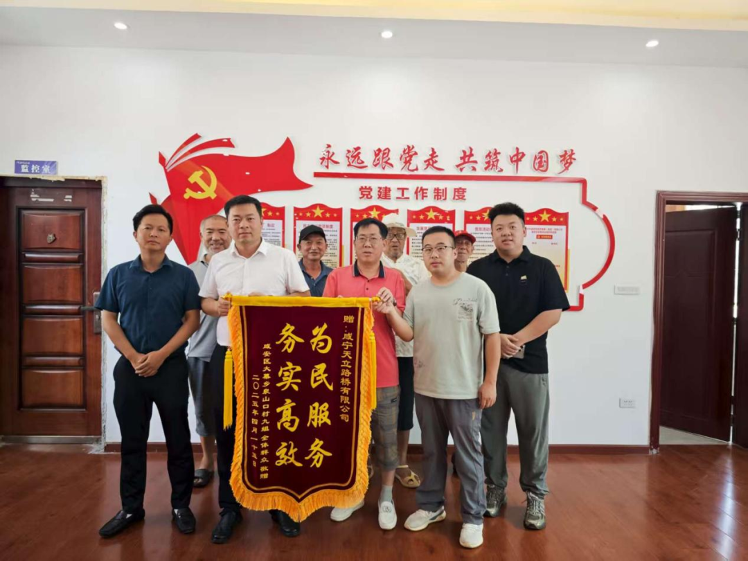 2025年7月24日,大幕鄉(xiāng)泉山口村4名村民代表來到區(qū)經(jīng)發(fā)集團(tuán),向經(jīng)發(fā)集團(tuán)授予錦旗,錦旗上繡著“高效服務(wù)辦實事,熱心為民暖人心”,以此表彰其在“大幕鄉(xiāng)小田并大田”項目中取得的卓越成果。